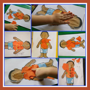 We also learn about water safety with a mosaic life jacket activity: I must never play near water by myself. And I must never swim without floaties or a float jacket...